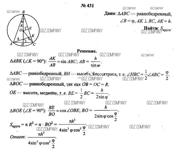 Здесь готовые ответы по Геометрии за 9 (девятый) класс от Шлыков Учебник (издательство: Народная асвета от 2012 г.) № 431
