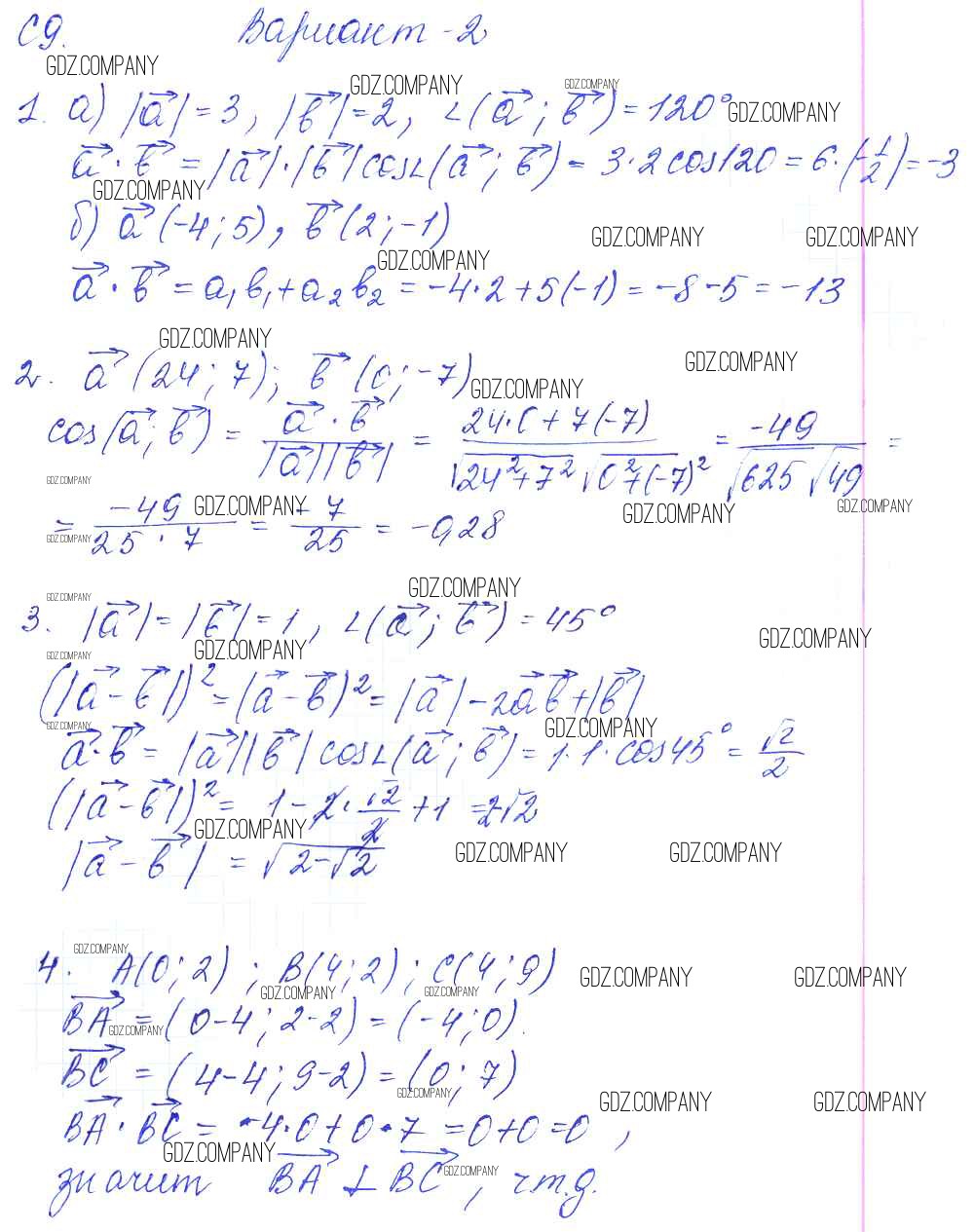 самостоятельные работы / к учебнику Атанасяна / ср-9. вариант / 2