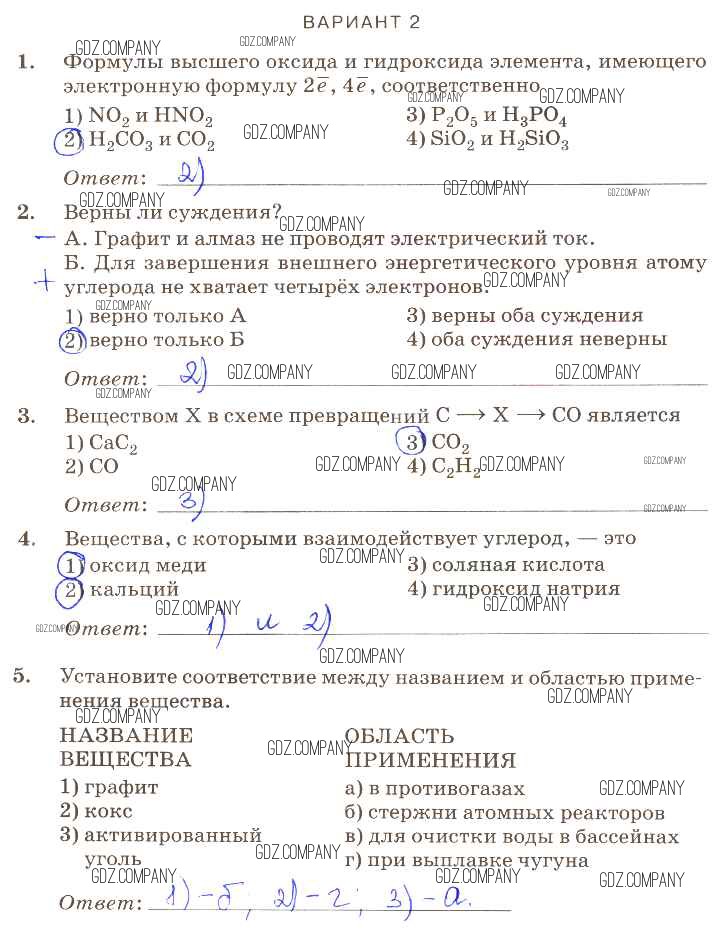 Здесь готовые ответы по Химии за 9 (девятый) класс от Габриелян, Березкин, Ушакова, Майорова, Кузьмина, Кириллова Контрольные работы Вертикаль (издательство: Дрофа от 2013 г.) № вариант-2