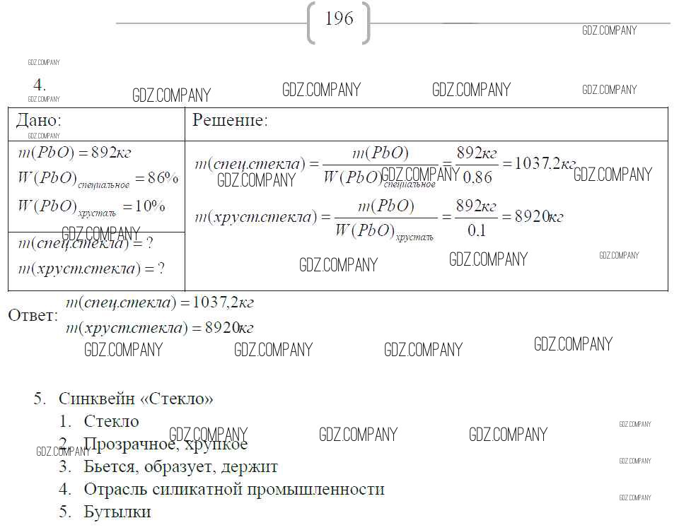 Здесь готовые ответы по Химии за 9 (девятый) класс от Габриелян, Сладков Рабочая тетрадь Вертикаль (издательство: Дрофа от 2014 г.) № 196