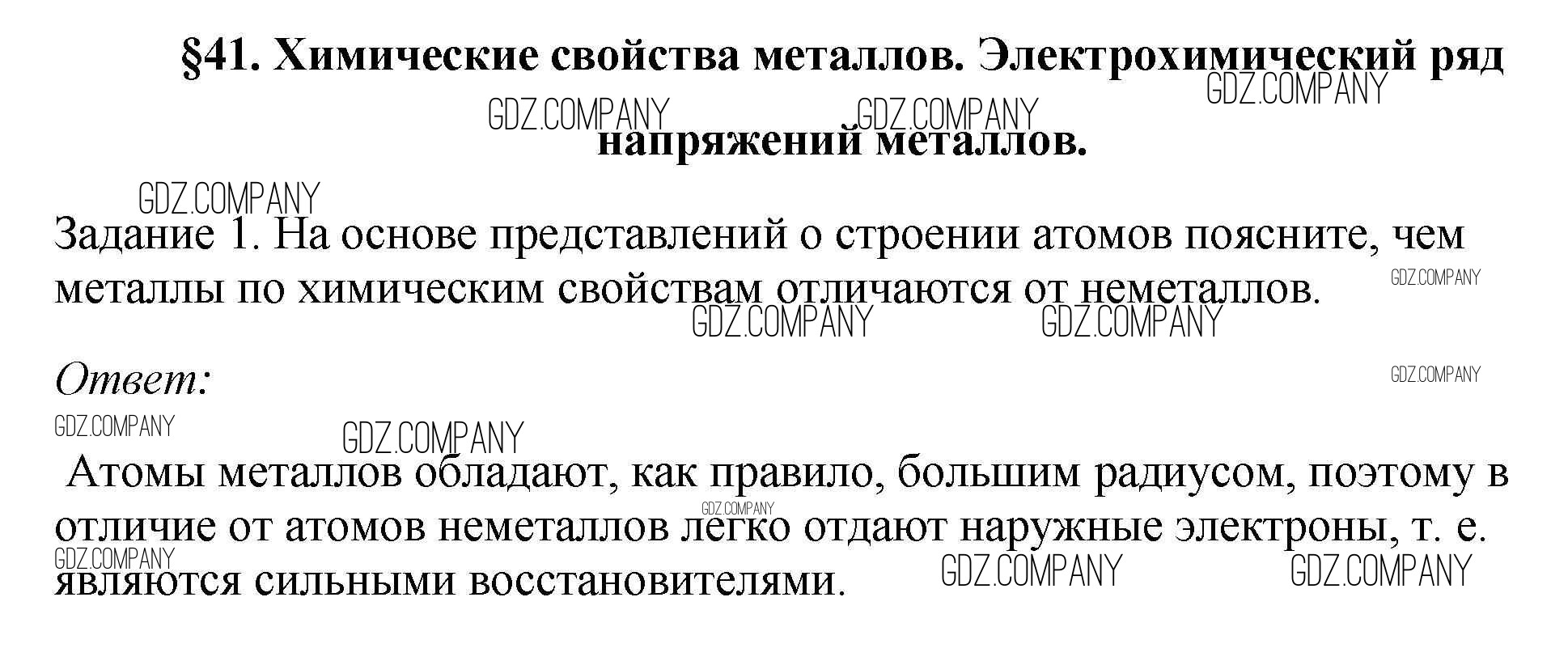 новое издание / § 41. Химические свойства металлов. Электрохимический ряд напряжения металлов / 1
