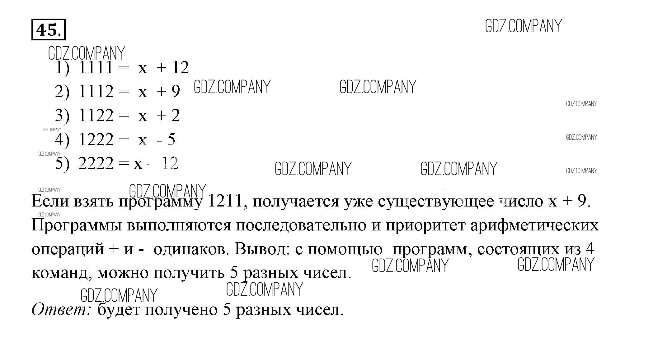 Здесь готовые ответы по Информатике за 9 (девятый) класс от Босова Рабочая тетрадь Базовый и углубленный уровень (издательство: Бином от 2017 г.) № 45 Базовый и углубленный уровень
