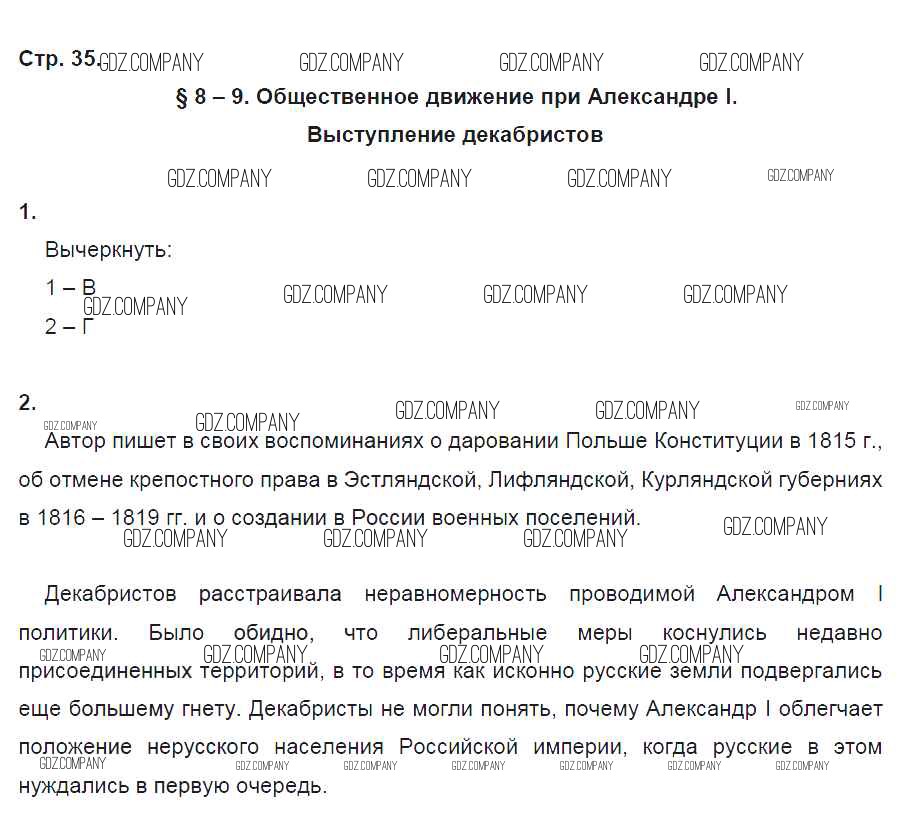Здесь готовые ответы по Истории за 9 (девятый) класс от Данилов, Косулина, Лукутин, Макарова Рабочая тетрадь УМК (издательство: Просвещение от 2017 г.) № 35