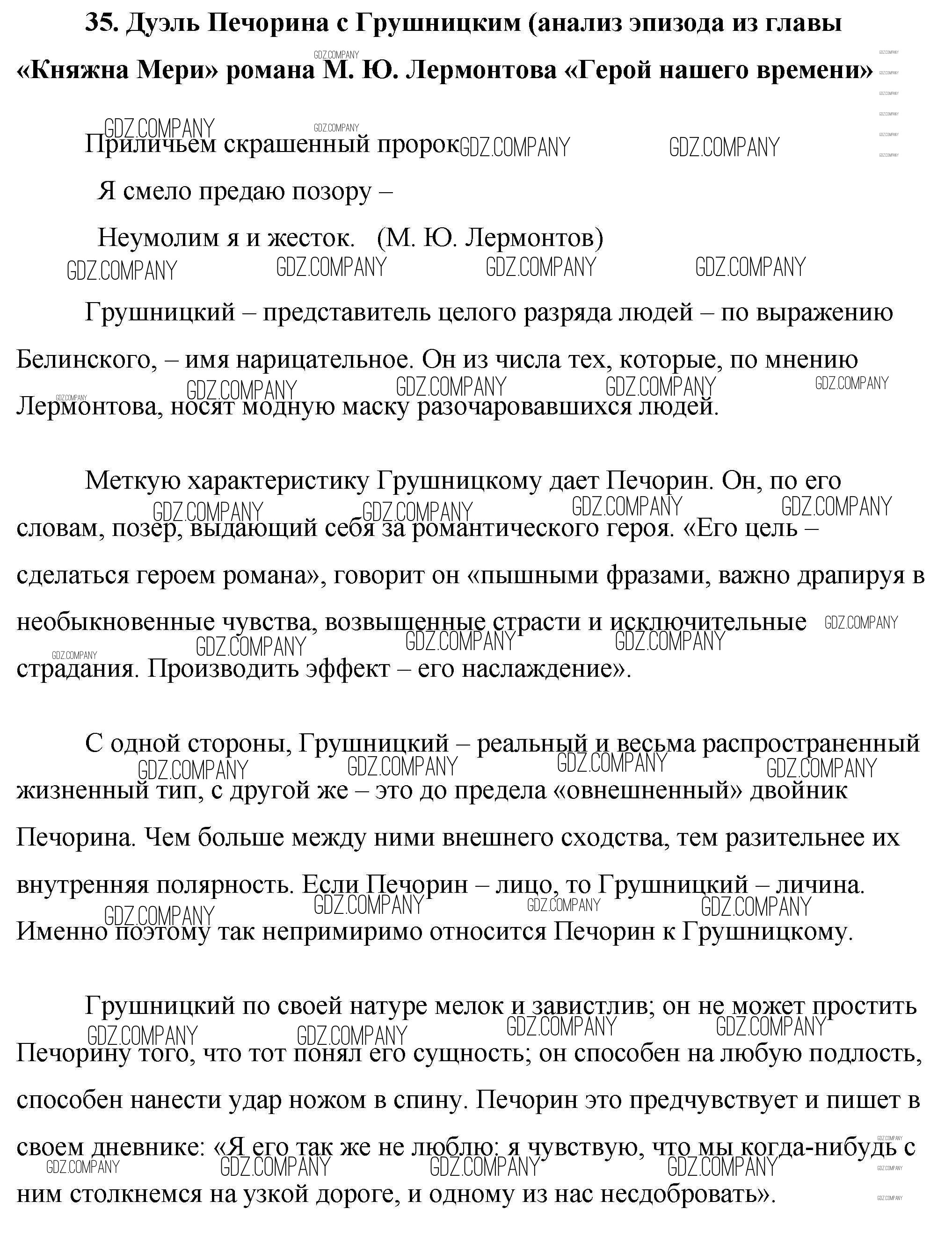 сочинение / 35. Дуэль Печорина с Грушницким (анализ эпизода из главы «Княжна Мери» романа М. Ю. Лермонтова «Герой нашего времени»