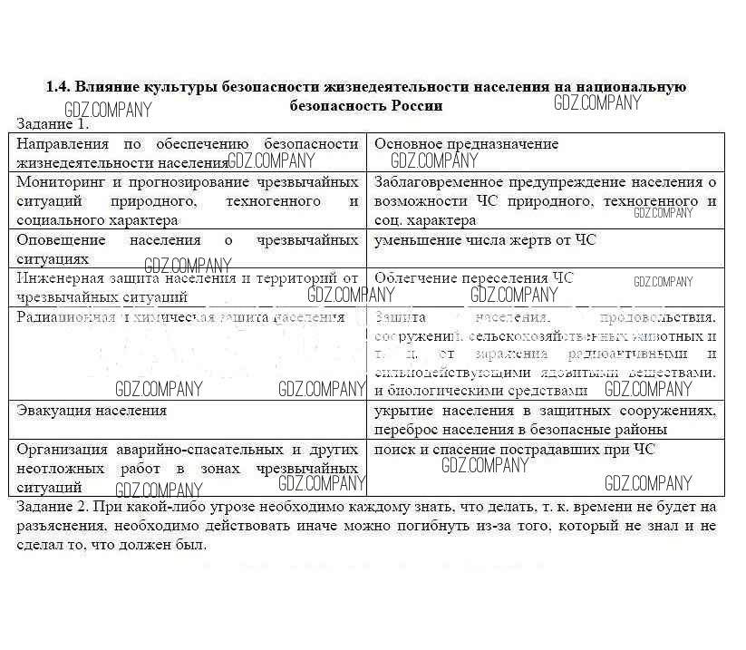 Здесь готовые ответы по ОБЖ за 9 (девятый) класс от Смирнов, Хренников, Маслов Рабочая тетрадь (издательство: Просвещение от 2018 г.) № 1.4