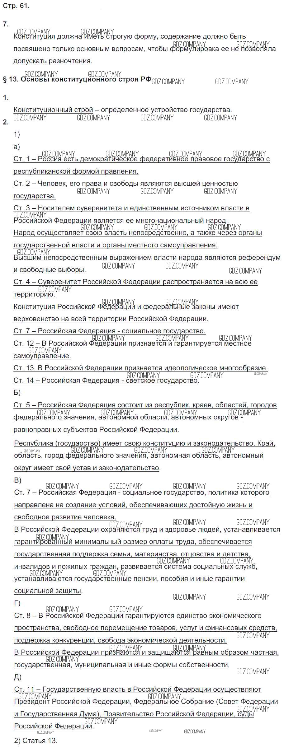 Здесь готовые ответы по Обществознанию за 9 (девятый) класс от Котова, Лискова Рабочая тетрадь УМК (издательство: Просвещение от 2016 г.) № 61