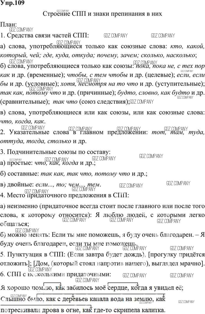 Здесь готовые ответы по Русскому языку за 9 (девятый) класс от Бархударов, Крючков, Максимов, Чешко Учебник (издательство: Просвещение от 2011 г.) № 109