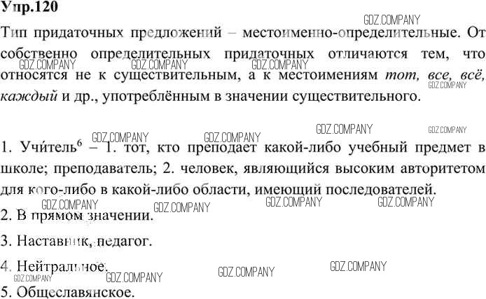 Здесь готовые ответы по Русскому языку за 9 (девятый) класс от Бархударов, Крючков, Максимов, Чешко Учебник (издательство: Просвещение от 2011 г.) № 120