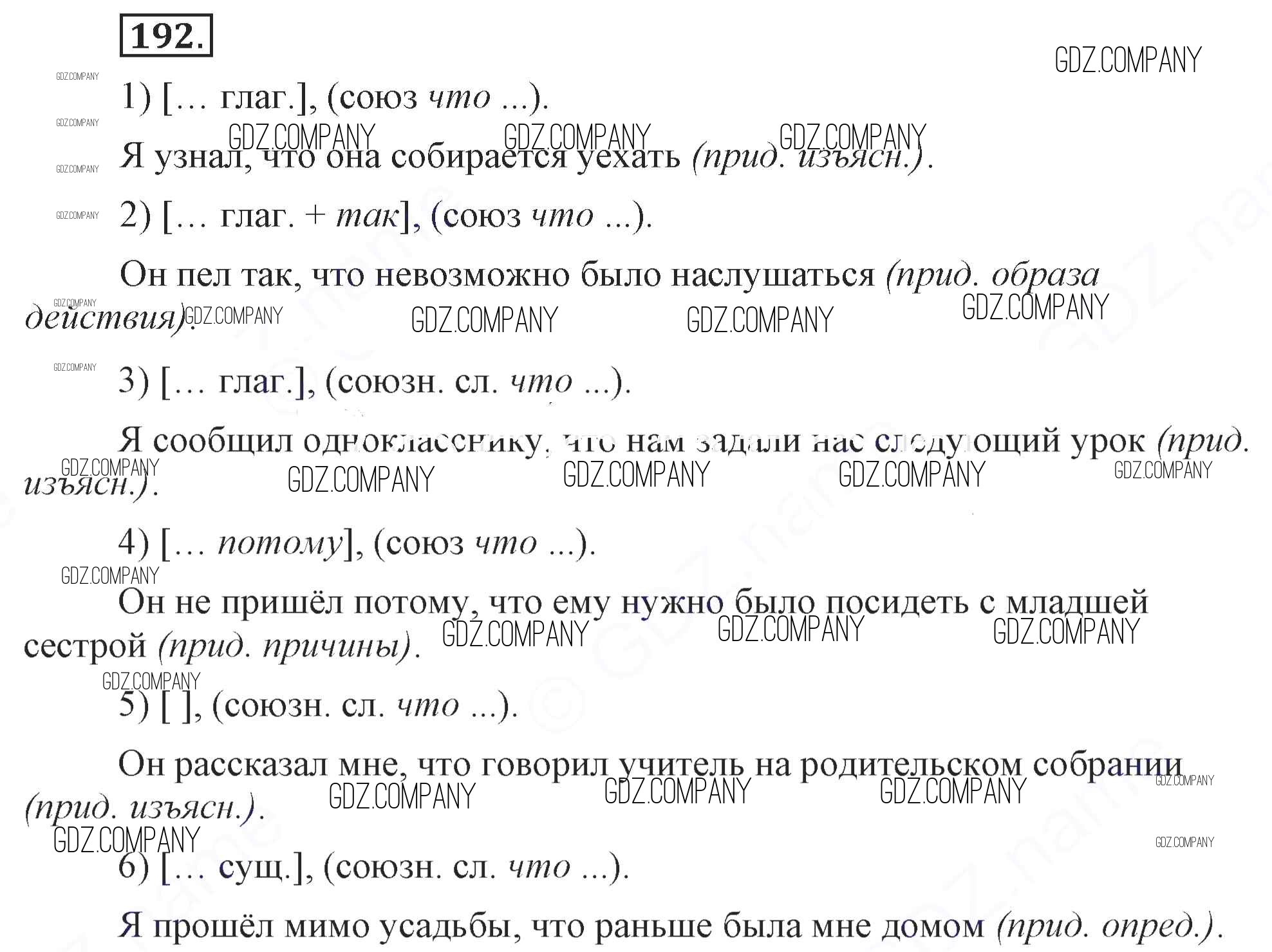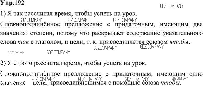 Здесь готовые ответы по Русскому языку за 9 (девятый) класс от Бархударов, Крючков, Максимов, Чешко Учебник (издательство: Просвещение от 2011 г.) № 192