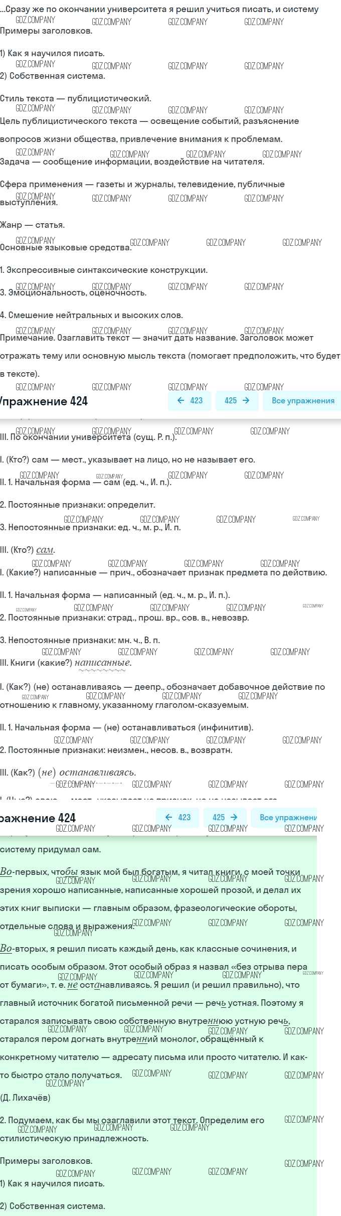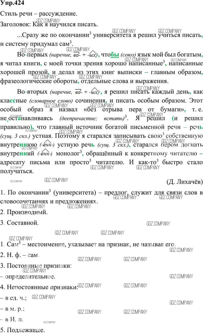 Здесь готовые ответы по Русскому языку за 9 (девятый) класс от Бархударов, Крючков, Максимов, Чешко Учебник (издательство: Просвещение от 2011 г.) № 424
