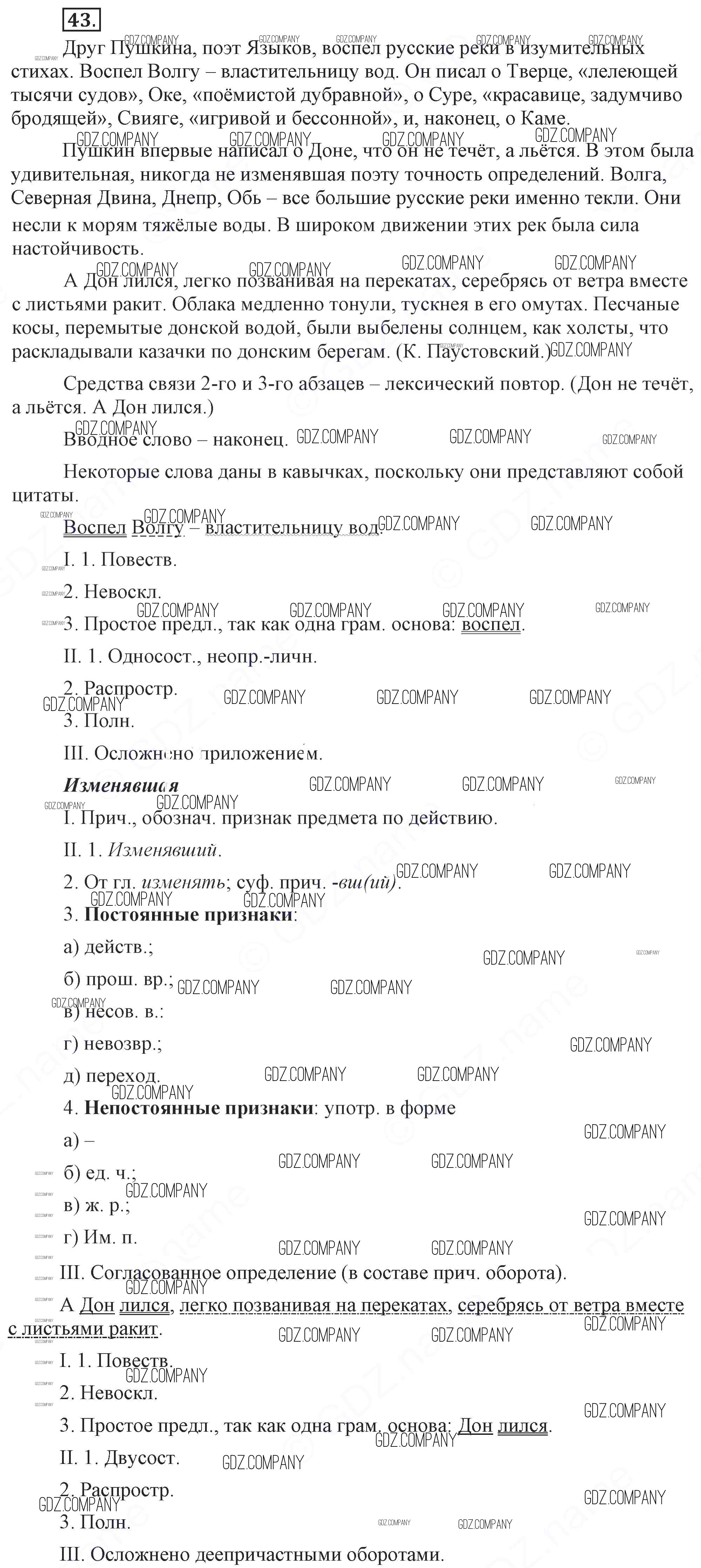 Здесь готовые ответы по Русскому языку за 9 (девятый) класс от Бархударов, Крючков, Максимов, Чешко Учебник (издательство: Просвещение от 2011 г.) № 43