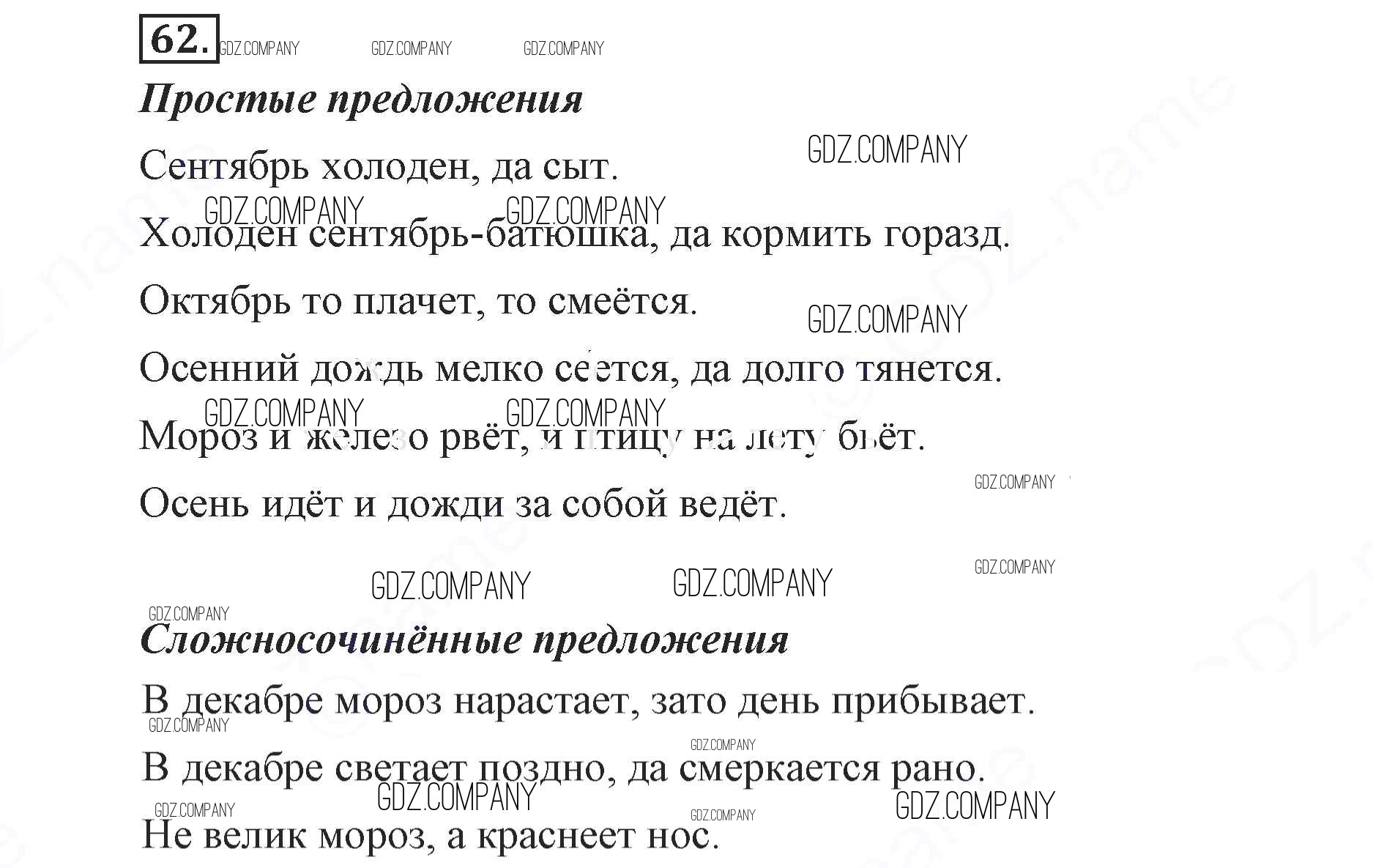 Здесь готовые ответы по Русскому языку за 9 (девятый) класс от Бархударов, Крючков, Максимов, Чешко Учебник (издательство: Просвещение от 2011 г.) № 62