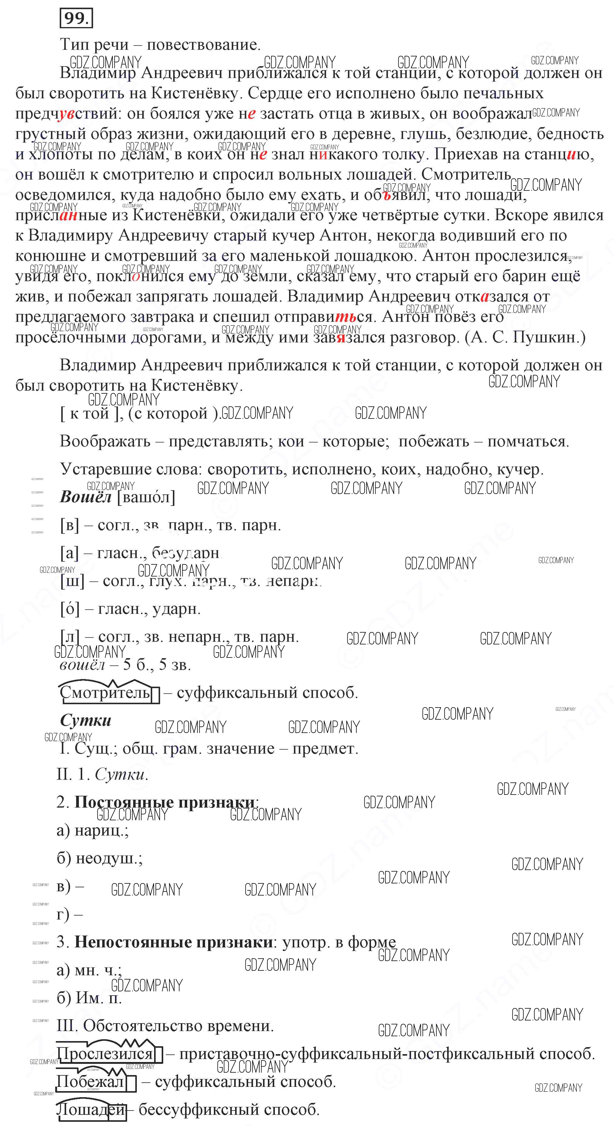 Здесь готовые ответы по Русскому языку за 9 (девятый) класс от Бархударов, Крючков, Максимов, Чешко Учебник (издательство: Просвещение от 2011 г.) № 99