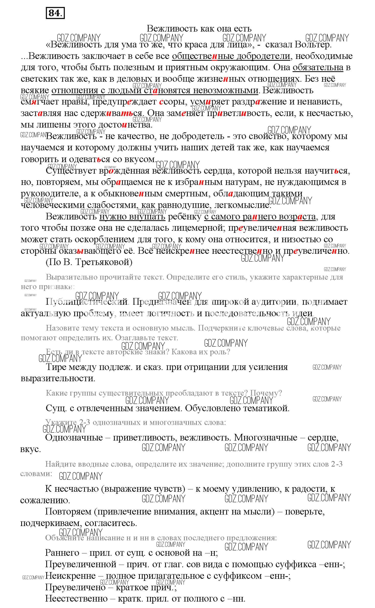 Здесь готовые ответы по Русскому языку за 9 (девятый) класс от Богданова Рабочая тетрадь (издательство: Генеза от 2017 г.) № 84
