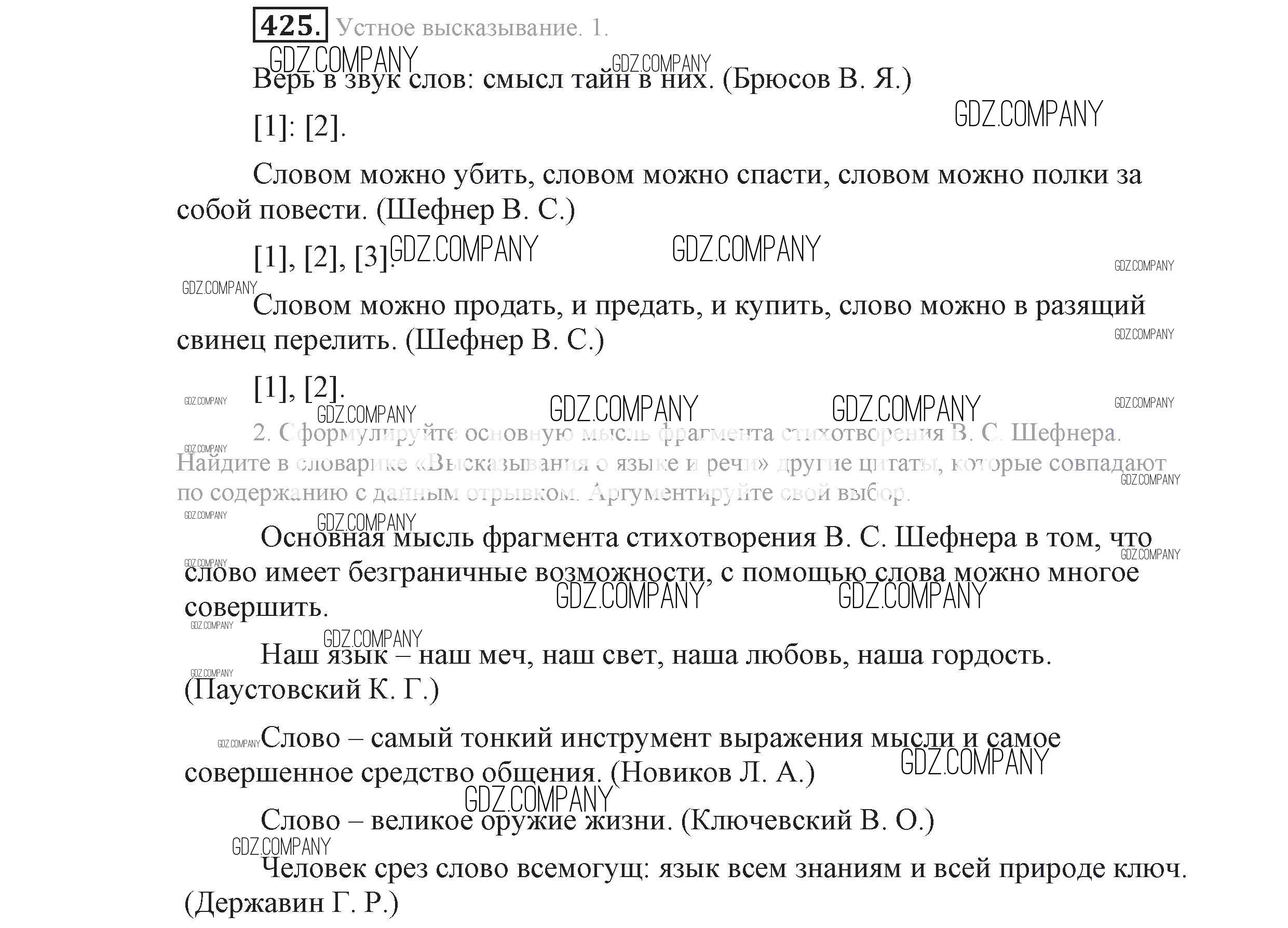Здесь готовые ответы по Русскому языку за 9 (девятый) класс от Львова, Львов Учебник (издательство: Мнемозина от 2016 г.) № 425