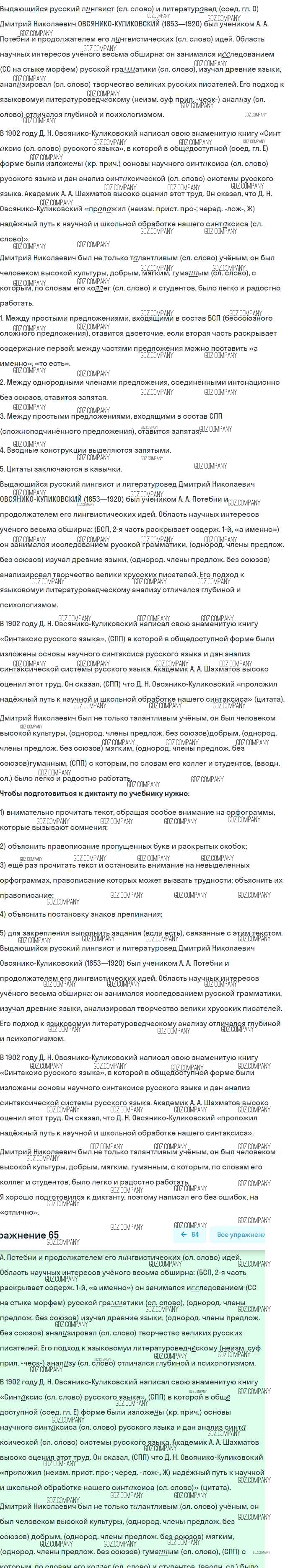 Здесь готовые ответы по Русскому языку за 9 (девятый) класс от Разумовская, Львова, Капинос, Львов Учебник Вертикаль (издательство: Дрофа от 2018 г.) № 65