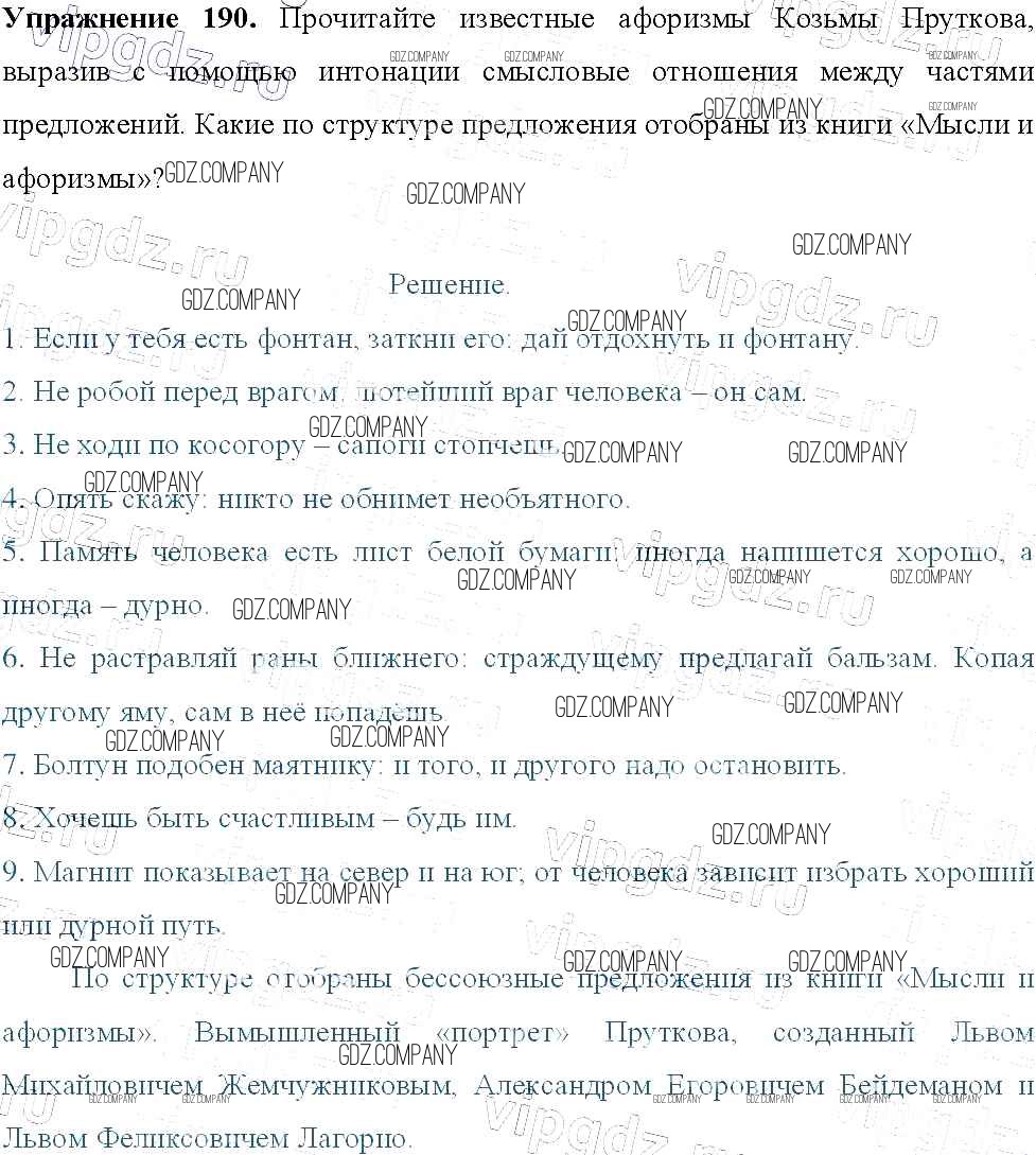 Здесь готовые ответы по Русскому языку за 9 (девятый) класс от Тростенцова, Ладыженская, Дейкина, Александрова Учебник (издательство: Просвещение от 2014 г.) № 190