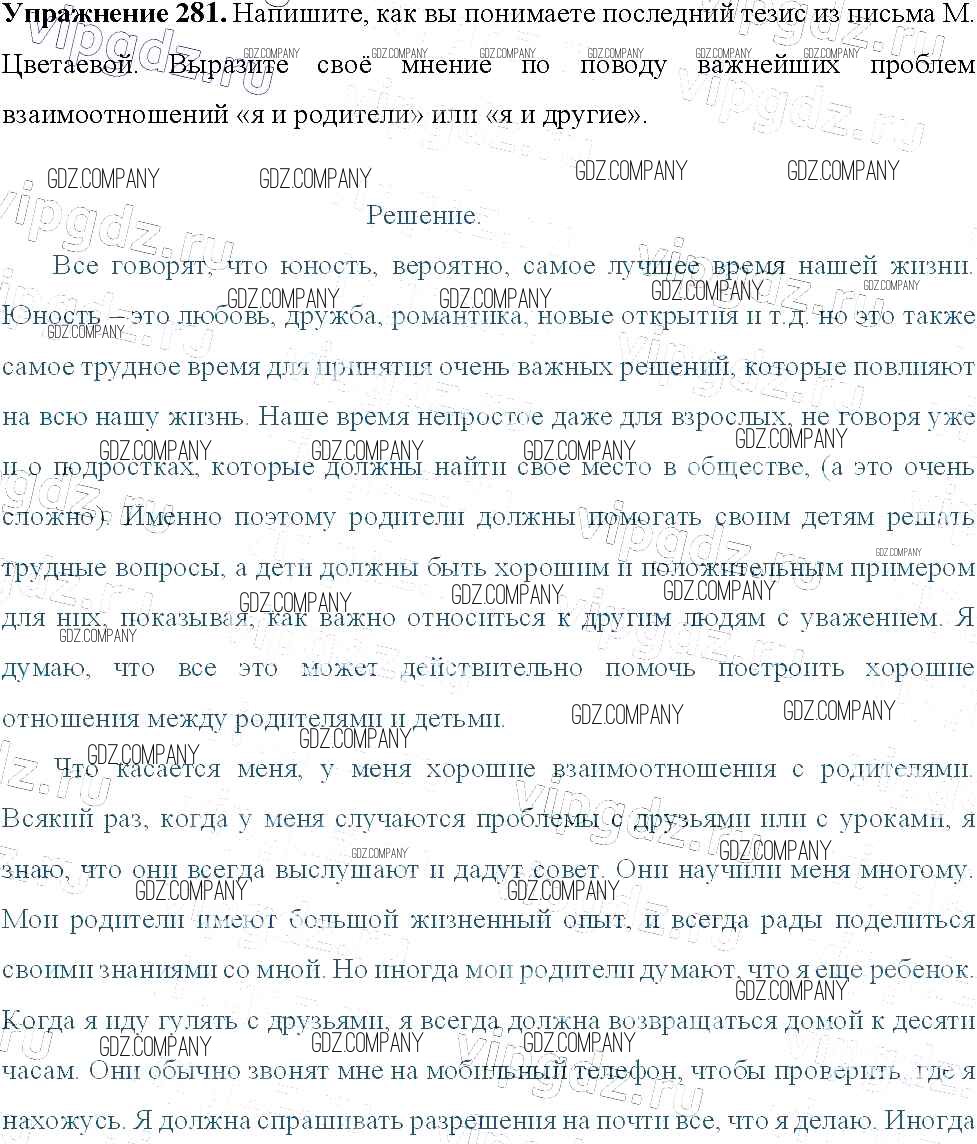Здесь готовые ответы по Русскому языку за 9 (девятый) класс от Тростенцова, Ладыженская, Дейкина, Александрова Учебник (издательство: Просвещение от 2014 г.) № 281