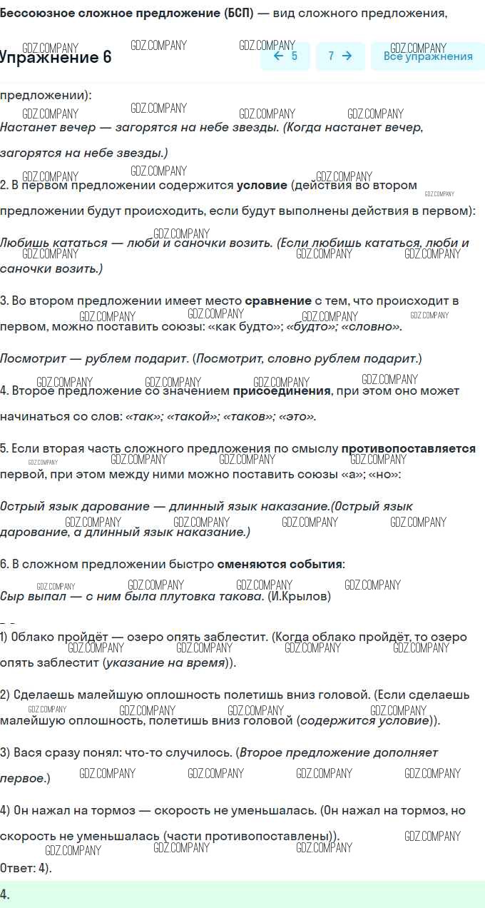 итоговый тест по теме «бессоюзное сложное предложение» / вариант 2 / 6